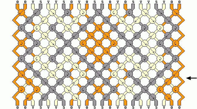 Achtung - provisorische Knüpfanleitung! Skizze wurde mit dem Pattern-Generator von friendship-bracelets.net erstellt. |