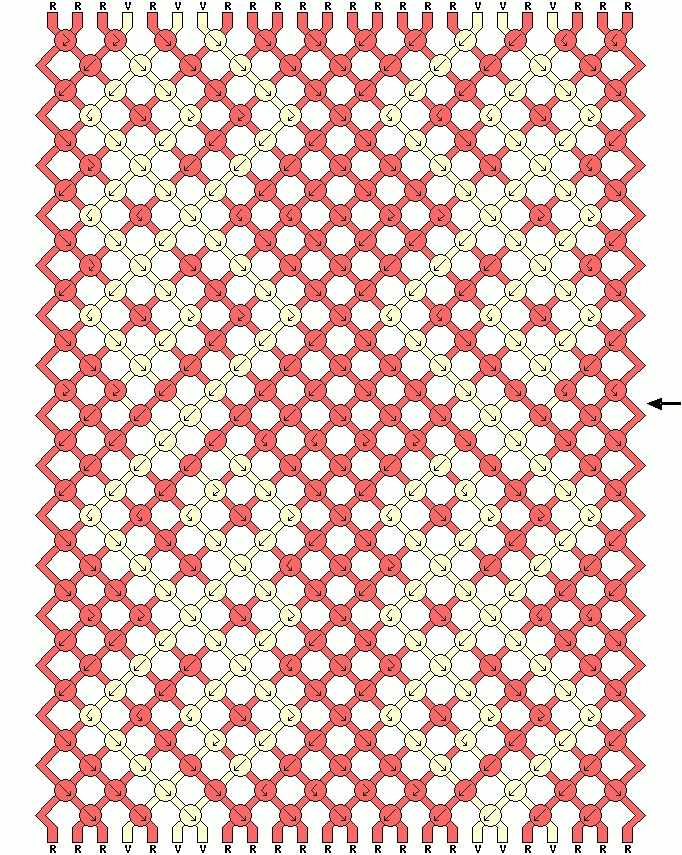 Muster laut Skizze zwei Mal wiederholen. Abschließend bis zur Markierung (Pfeil) knüpfen.