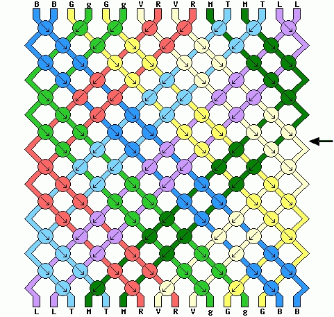 Achtung - provisorische Knüpfanleitung! Skizze wurde mit dem Pattern-Generator von friendship-bracelets.net erstellt. |