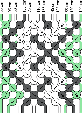 Ordne die Fäden nach Farben und Längen entsprechend der folgenden Skizze an: