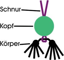 damit auf jeder Seite des Körpers sechs Fäden zum Knüpfen entstehen.
